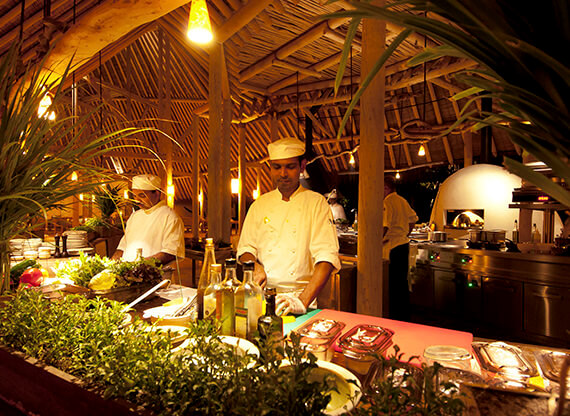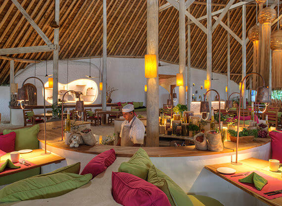 Ресторан Down to Earth by Ravi («Назад к земле» от Рави) символизирует возвращение к истокам – древнейшую практику сближения при помощи совместных трапез. Уютная обстановка и отсутствие Wi-Fi позволяют гостям Soneva Fushi уделять внимание исключительно вкусной еде, напиткам и свободному общению друг с другом. Попробуйте блюда из разных уголков мира, приправленные свежим бризом и красивейшими панорамами океана!