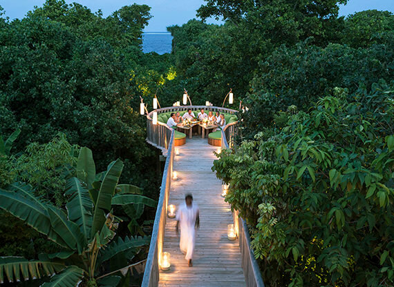 Ресторан Fresh in the Garden – оазис вкусов и ароматов, дарованных самой природой. За основу берутся ароматные травы, свежайшие овощи и фрукты, рыба и морепродукты – и из них рождается гастрономическое совершенство, воплощающее идею о здоровой и невероятно вкусной пище. Гости могут насладиться закусками и канапе прямо в органических садах Soneva Fushi, а затем выбрать сет из 5-7 блюд или сделать индивидуальный заказ по обширному меню.