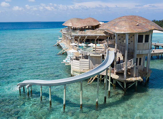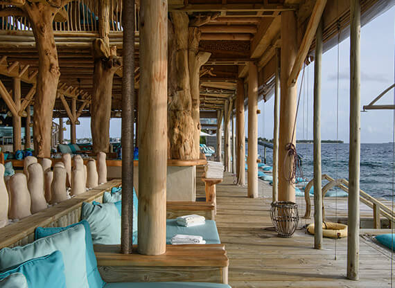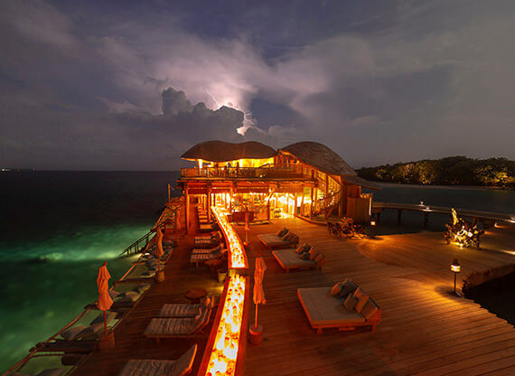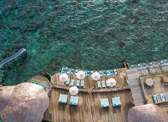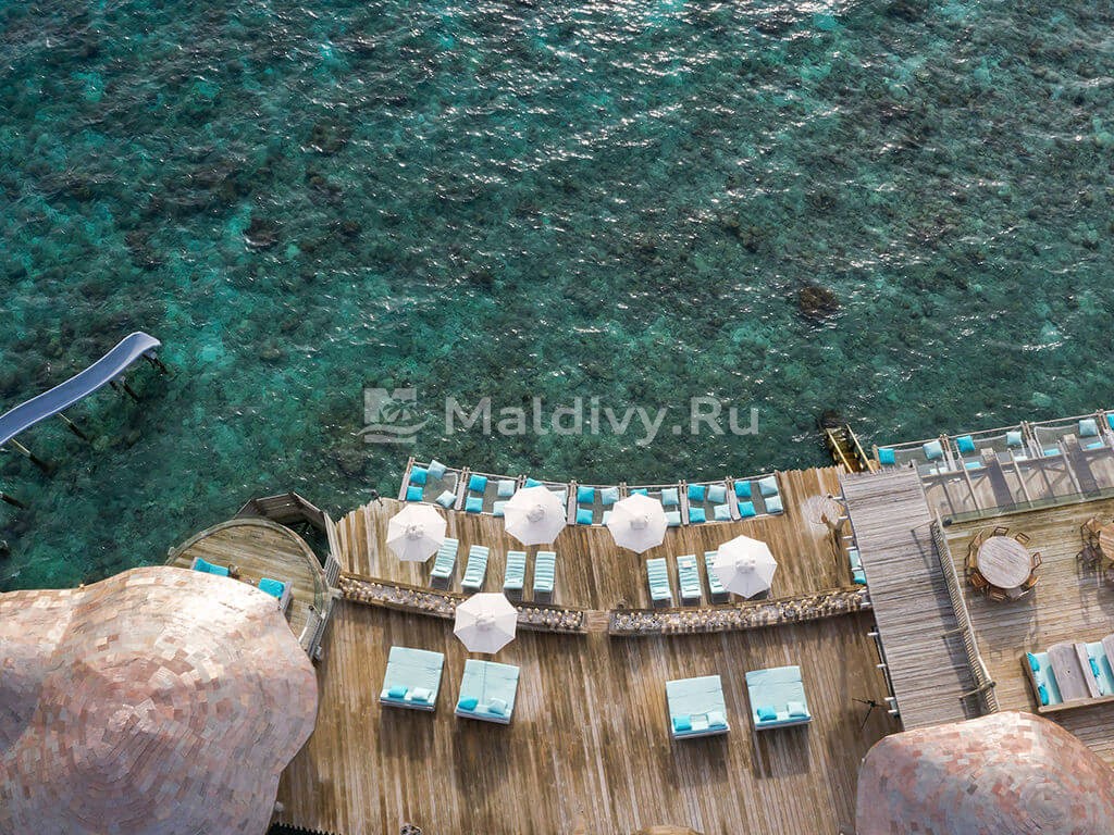 Ресторан Out of the Blue – грандиозный надводный комплекс, объединяющий несколько гастрономических концепций (в том числе, и одноименную). Красивейшие панорамы океана, свободная атмосфера и гармония с природой создают идеальное настроение для наслаждения шедеврами азиатской кулинарии. Здесь часто гостят и творят повара со звездами Мишлен, а выбор напитков и коктейлей – один из лучших на Мальдивах!