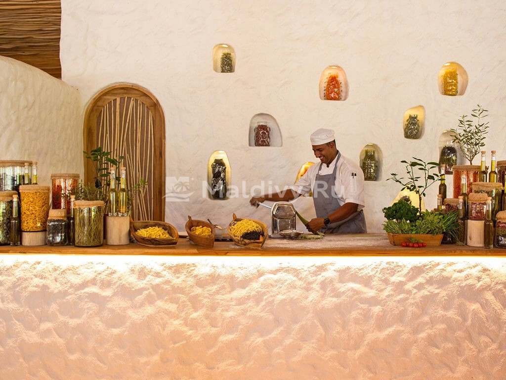 Ресторан Pasta Counter – великолепный комплимент итальянской кухне в приложении к ее главным визиткам – пасте и равиоли. Ежедневно на глазах у восхищенных зрителей опытный шеф-повар создает различные виды пасты и готовит из нее восхитительные блюда. Наблюдать за этим завораживающим действом можно прямо со столиков у открытой кухонной зоны или вольготно возлежа на удобной кушетке.