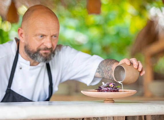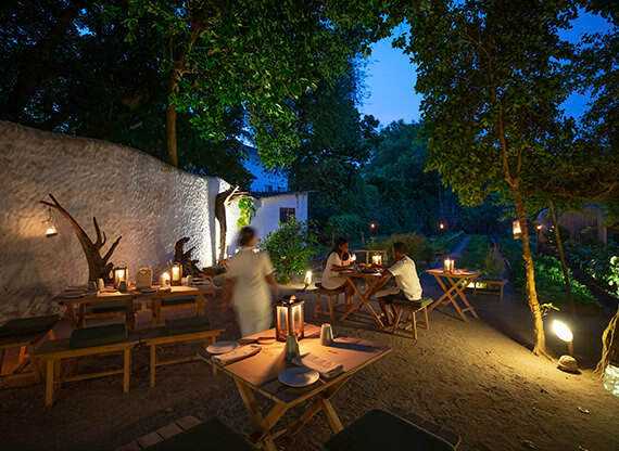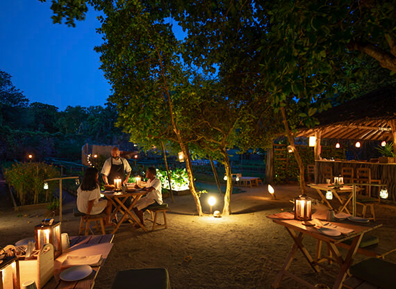 Ресторан Shades of Green («Оттенки зеленого») – растительное царство, где безраздельно властвует именитый датский шеф-повар и апологет ЗОЖ Карстен Кайстер. В преддверии вкусного и здорового ужина гости гуляют по органическим садам Soneva Fushi в сопровождении консультанта. Можно самостоятельно собрать продукты для простого, но креативного меню из шести блюд, меняющегося в зависимости от сезона. Дизайн блюд достоин их высочайших вкусовых качеств!