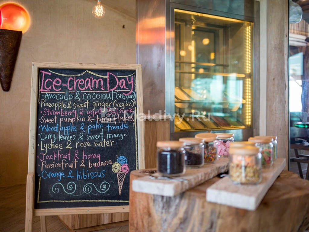 Фудкорт So Cool («Так круто») – воплощение мечтаний всех детей и многих взрослых гостей Soneva Fushi, особенно в тропическую жару. Здесь собраны более 60 сортов классического и креативного мороженого, которому можно придать дополнительные обертона вкусов и ароматов с помощью уникальной коллекции «Сонева». Акцент сделан на сорбеты, не содержащие рафинированного сахара, молока и глютена.