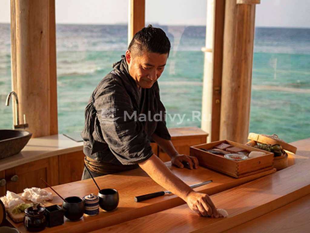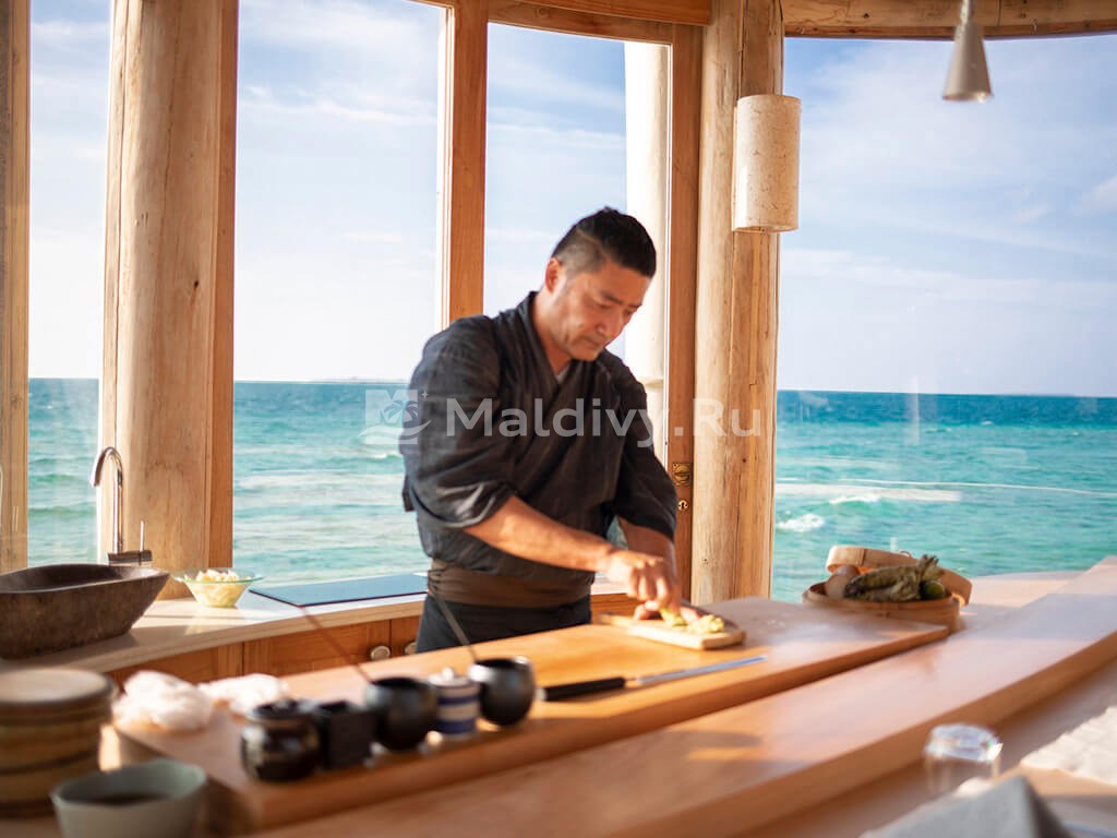 Ресторан So Hands On – величественная ода японскому гастрономическому искусству омакасе. Один из лучших суши-мастеров мира Акира Коба демонстрирует избранным гостям Soneva Fushi не только собственное искусство, но и умение угадывать их желания. Эксклюзивное кулинарное шоу на основе свежайших морепродуктов – только по предварительному заказу!