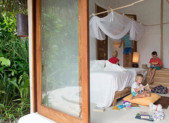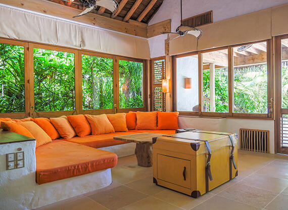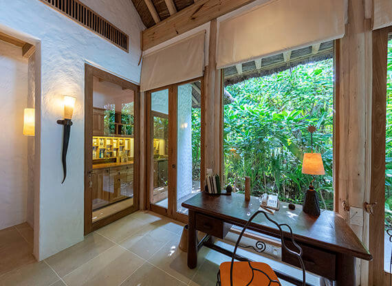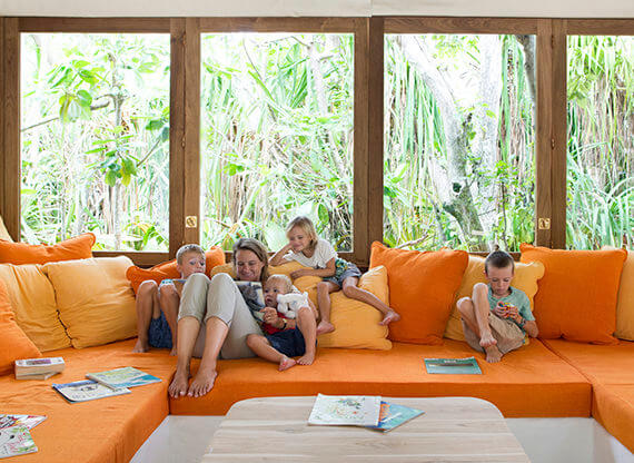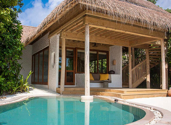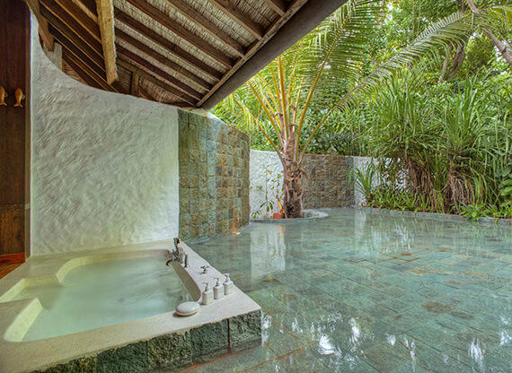 Идеальное семейное убежище выглядит именно так – как великолепная Soneva Fushi Family Villa Suite with Pool, украшающая побережье изумрудного острова Кунфунаду. Резиденция расположена у самого пляжа и окружена буйной тропической растительностью. Обратите внимание на затопленный внутренний дворик, где располагается зона релаксации и ванная – визитную карточку наземных вилл Soneva.