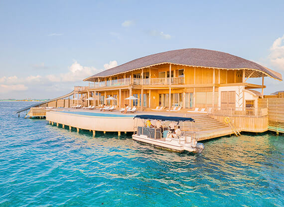 Ресторан Floating Kitchen («Плавучая кухня») – одна из многочисленных эксклюзивных изюминок Soneva Jani. Представьте себе: плавучая кухня величественно следует по лазурным водам океана и подплывает к вашей вилле. На ваших глазах повара создают изысканный ужин из пяти блюд прямо на палубе – насладитесь утонченными гастрономическими обертонами в уютной атмосфере собственной роскошной виллы!