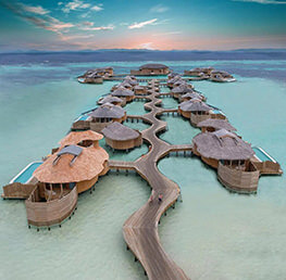 Великолепный Soneva Jani носит сияющее колье из надводных резиденций, уверенно входящих в топ-10 самых больших и роскошных на Мальдивах. Это 51 вилла класса суперлюкс, каждая из которых может похвастаться внушительным списком гостей из самых высоких слоев общества. Здесь селебрити делали селфи на фоне лазурных бассейнов и безупречных интерьеров, аристократы наслаждались гастрономическими изысками и фантастическими закатами, звезды первой величины наблюдали за звездами сквозь эксклюзивные сдвижные крыши!