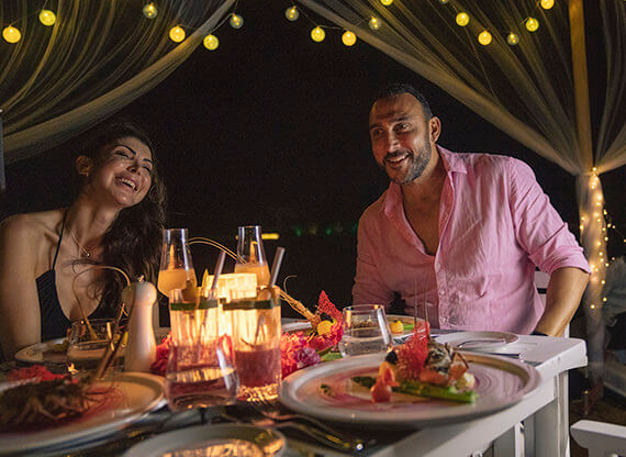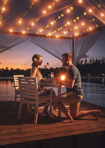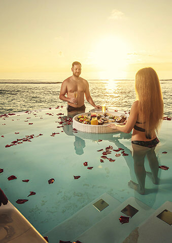 Sun Siyam Olhuveli Maldives – крупный и оживленный отель, но и он вполне может стать местом для идеального романтического путешествия. Один остров (а по сути – отдельный пятизвездочный резорт Sun Siyam Olhuveli Romance) полностью посвящен любви и романтике. Уединенные виллы на двоих с грандиозными круглыми кроватями и приватными бассейнами – просто рай для молодоженов. Влюбленные, жаждущие активности и общения, наверняка обретут желаемое на двух других островах – от круизов и романтических ужинов до обширной развлекательной программы!