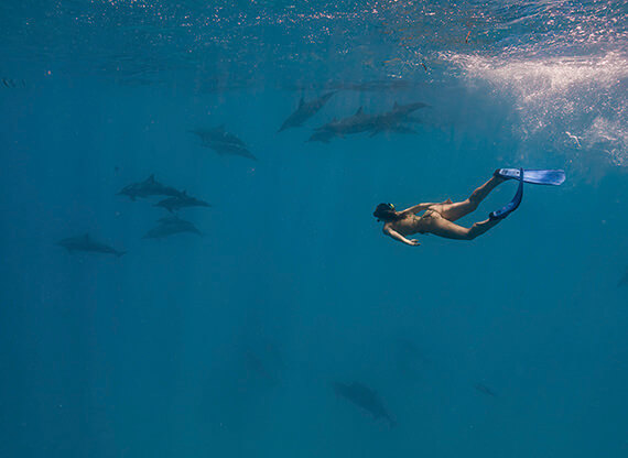 Sun Siyam Olhuveli Maldives оккупировал целых три острова в популярном атолле Южный Мале. Да, туристический прессинг здесь велик, но это значит, что лучшие дайв-сайты уже исследованы и открыты для посещений. Их количество измеряется многими десятками, а любителям снорклинга доступен классный домашний риф, куда часто заплывают морские черепахи и манты. Кроме того, центр Sun Diving предлагает приватные снорк- и дайв-сафари по лучшим поинтам Каафу и близлежащих атоллов.
