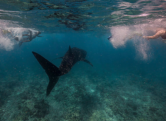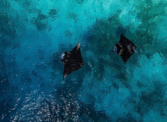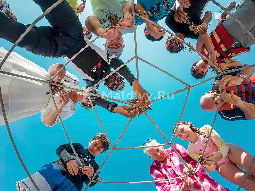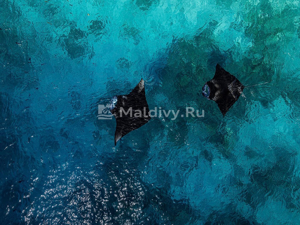Кластер из трех островов опоясан шикарным домашним рифом. Он густо населен разнообразными кораллами, яркими моллюсками, разнообразными рифовыми рыбками, скатами, муренами, черепахами и прочей подводной живностью. При желании можно отправиться в гости к самым медийным персонам – гигантским мантам, добродушным акулам-нянькам или грандиозным китовым акулам.