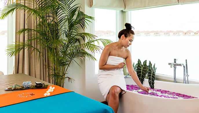 Гости отеля получают доступ сразу к трем спа-центрам – один другого лучше. Первый утопает в тропических садах острова Main, второй (Ocean Spa) украшает хрустальную лагуну Dream, третий (Blue Spa) находится на острове Romance и предлагает самые утонченные ритуалы для пар. Все три роскошных спа-центра доступны гостям всех островов – посетите каждый, не откажите себе в эксклюзивном релаксе!