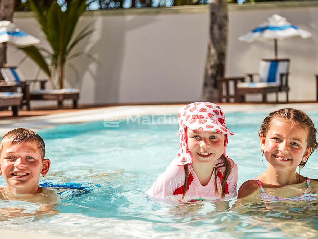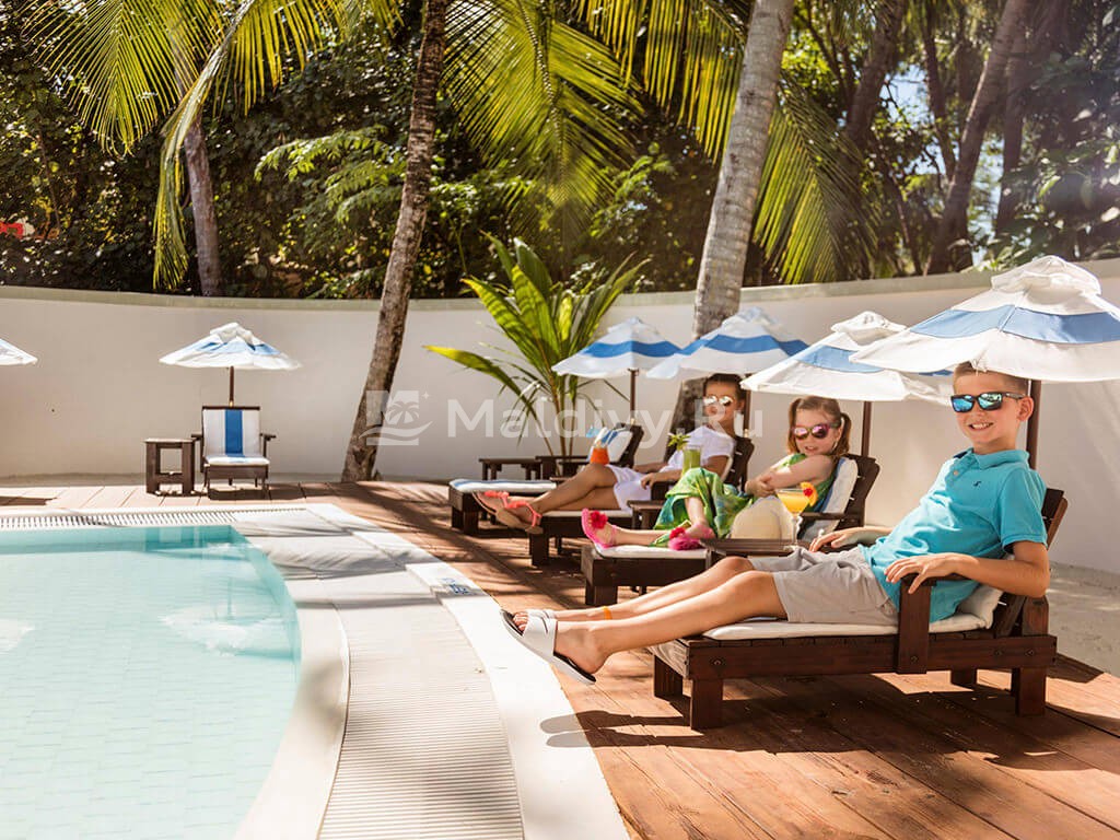 В распоряжении малышни – целых 5 бассейнов, множество площадок для игр и спорта, а также обширное пространство детского клуба Maakanaa Kidz. Юных гостей отеля делят на возрастные группы и предлагают им соответствующие занятия, поэтому детям никогда не бывает скучно. Могут по-настоящему расслабиться и родители – на пляже, в клубном бассейне, спа или баре только для взрослых.