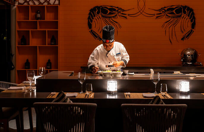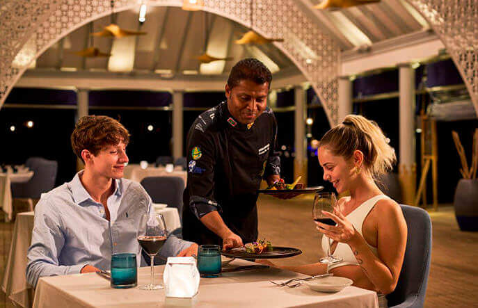 Гастрономическое богатство Sun Siyam Olhuveli Maldives не поддается краткому описанию: на территории трех островов (Main, Dream и Romance) расположилось около двух десятков разнообразных аутлетов: ресторанов, где представлены лучшие кухни мира, баров с отличным ассортиментом напитков и закусок (есть даже ночные), кафе и винотек. Они способны удовлетворить самые экзотические запросы, а также обеспечить гостей особым питанием в соответствии с предпочтениями и религиозными принципами.