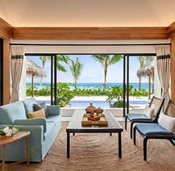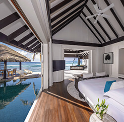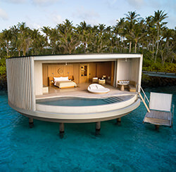 - 110 просторных пляжных вилл и надводных сьютов