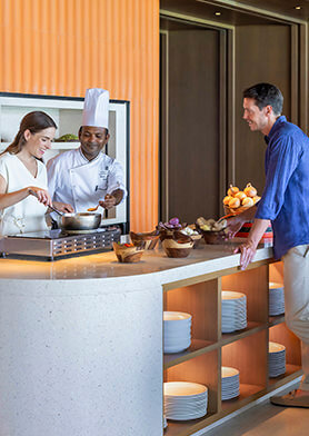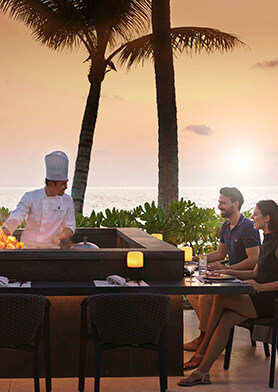 Гости The Ritz-Carlton Maldives могут посещать рестораны в трех локациях: Culinary Island, Grand Sunset Beach и Fari Marina Village. Между отелем и Fari Marina Village регулярно курсируют спидботы.