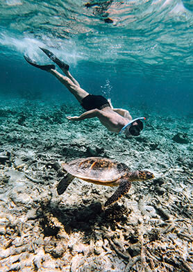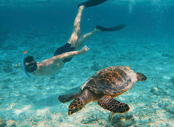 - Поплавать с морскими черепахами, китовыми акулами, мантами