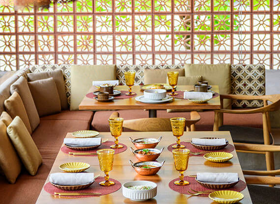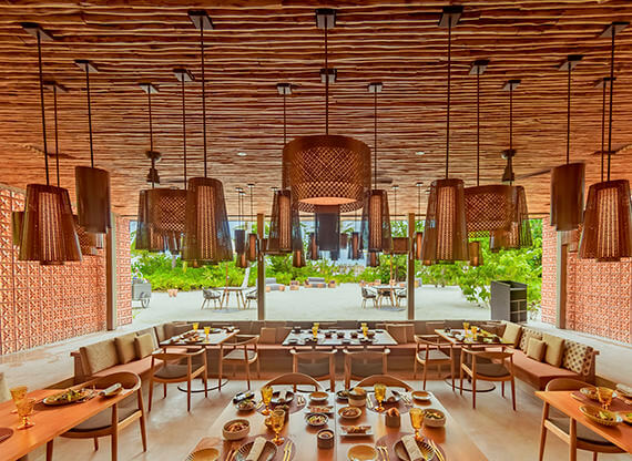 Ресторан Arabesque – дань уважения ближневосточным кулинарным традициям, стилизованная под аутентичный бедуинский шатер. Отдыхая в Fari Marina Village, гости The Ritz-Carlton Maldives могут совершить увлекательное кулинарное путешествие из Ливана в Северную Индию с остановками в знаковых гастрономических точках. Лучшие блюда региона, знаменитый турецкий кофе, душистый марокканский чай и, конечно, кальян!