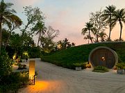Подкупают виллы. Они небольшие, но как маленькие архитектурные шедевры. Идеальные круги, в которые вписаны даже бассейны. Невероятно фотогенично, так и просится в сториз! Вообще все круглое, даже сад, детский клуб, спа-центр.