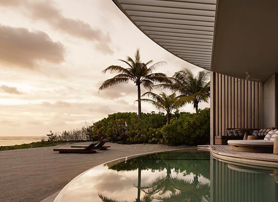 Sunset Beach Pool Villa не случайно имеет форму круга: это идеальная фигура, олицетворяющая гармонию и бесконечность. В этот роскошный круг вписана просторная спальня, элегантная ванная, изолированный санузел и две душевые (в помещении и снаружи). Форму замыкает просторная терраса и пейзажный бассейн с видом на пляж и океан.