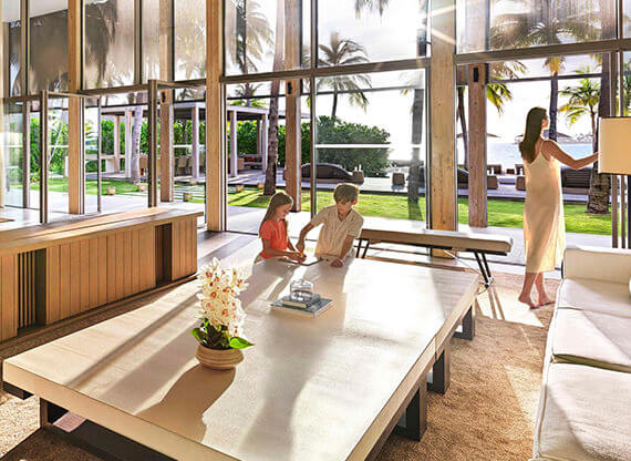 The Ritz-Carlton Estate представляет собой впечатляющий комплекс из четырех основных зданий. Три из них заняты гостевыми сьютами (два king-size, один twin) с восхитительными ванными, душевыми и изолированными санузлами. Мастер-сьют дополнен собственным бассейном и спа-рум. В отдельном здании расположена грандиозная гостиная-столовая, полностью оборудованная кухня и комната для персонала.