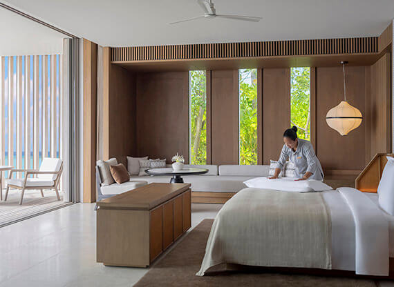 Фантастическая The Ritz-Carlton Estate (Ритц-Карлтон Эстейт) – эксклюзивное поместье, представляющее собой комплекс из четырех просторных бунгало. Это венец роскошного номерного фонда The Ritz-Carlton Maldives, предназначенный для самых взыскательных гостей. Резиденция занимает идеальную локацию в приватной бухте, обрамленной восхитительным пляжем и благоухающим тропическим садом. Здесь есть все атрибуты роскоши, от дополнительного бассейна и спа в главном сьюте до просторной столовой и зоны барбекю под открытым небом.