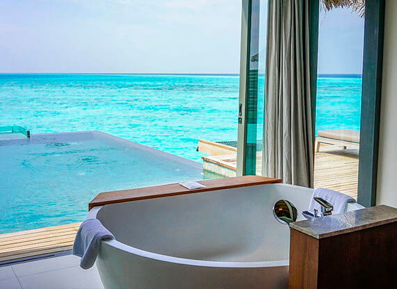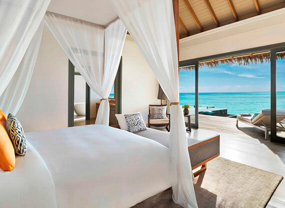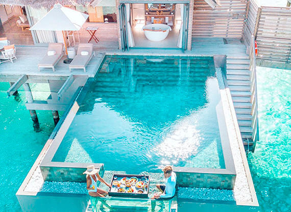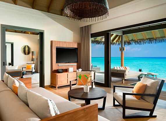 One Bedroom Over Water Pool Residence – невероятно просторная лакшери-резиденция, рассчитанная на премиальный отдых небольших компаний и семей с детьми. Гостиная легко превращается еще в одну спальню или детскую комнату, а гардеробная – в импровизированный рабочий кабинет. Небольшая кухня, огромная ванная, два санузла, грандиозная терраса и инфинити-бассейн – все, как вы любите. И чуточку больше!