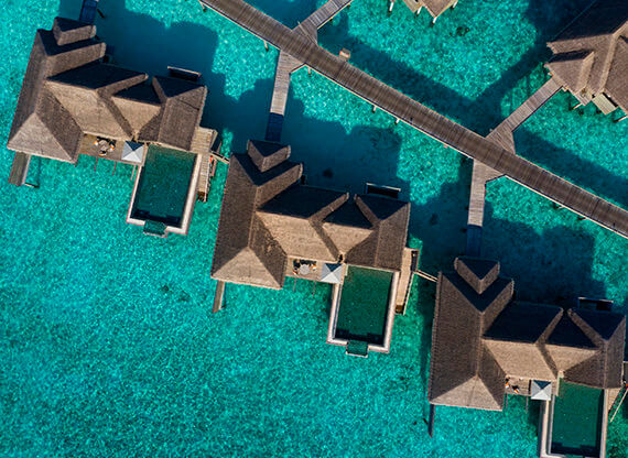 Самые маленькие бассейны расположены при Beach Villa with Plunge Pool, чуть побольше – при Beach Pool Villa и Beach Family Pool Villa (площадь 12 м2). Надводные виллы (за исключением Over Water Villa) оборудованы пейзажными бассейнами площадью 24 м2.