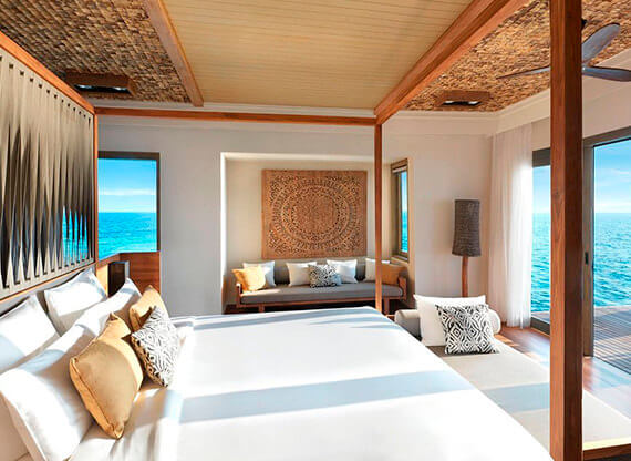 Over Water Family Pool Villa – это настоящий дом для дружной семьи с 2-3 детьми: двое ребят могут разместиться в отдельной комнате, еще один – в родительской спальне, на кушетке. Благоустроенный санузел, два душа, грандиозная терраса и пейзажный бассейн, уходящий в бесконечность – все для премиального отдыха вашей семьи.