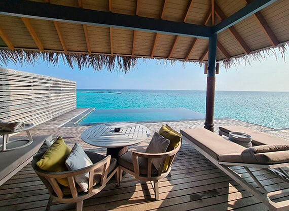 Семейная вилла над водой с бассейном (Over Water Family Pool Villa) – это вневременное святилище, возвышающееся на деревянных сваях над восхитительной лагуной Vakkaru. В нем будет уютно и родителям, и детям любого возраста, ведь аутентичный дизайн интерьера здесь органично сочетается с продвинутой техникой, удобствами и сервисом.