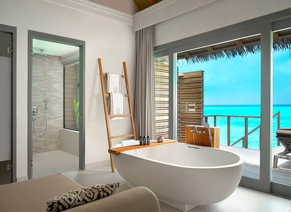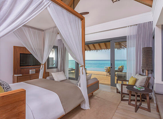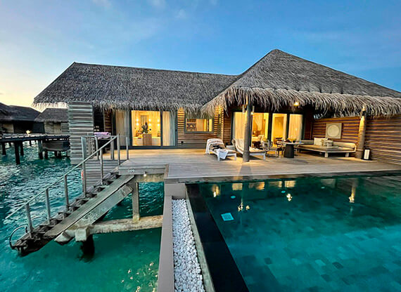 Вилла над водой с бассейном – это просторный дом на сваях, где есть все необходимое как для романтического, так и семейного отдыха.Грандиозная спальня с кроватью king-size, проходная комната для уединенного релакса, душевые и благоустроенный санузел, просторная терраса и впечатляющий пейзажный бассейн – все это великолепие в распоряжении гостей Over Water Pool Villa.