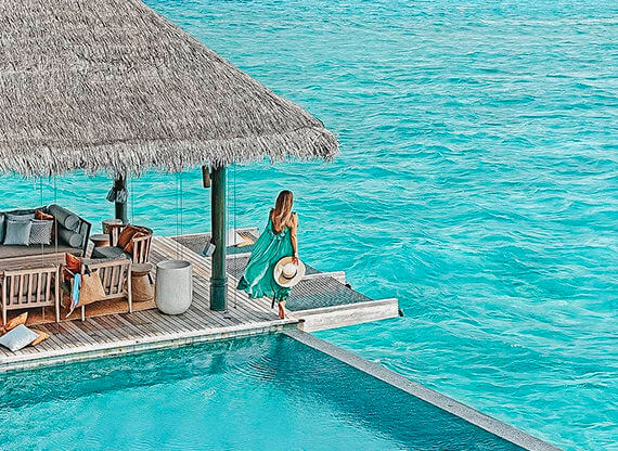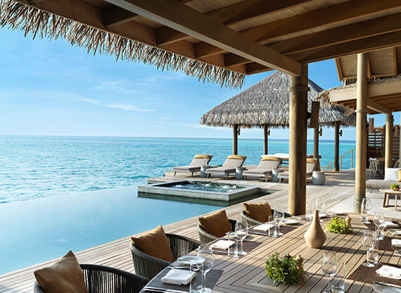 При резиденциях имеются инфинити-бассейны площадью 24–55 м2 (в зависимости от категории). Самый большой пейзажный бассейн – при роскошной The Vakkaru Over Water Residence.