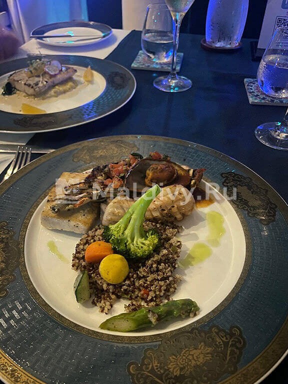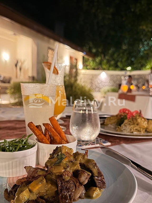 Итак, вилла. Ничего вроде особенного, но красиво, стильно, бесшумный кондиционер, все исправное и в наличии. К сожалению, очень немногие мальдивские отели могут этим похвастаться, постоянно что-то отваливается. Еда в главном ресторане Lime & Chili неплохая, но ничего особенного. Азиатский вечер хорош. Из а ля карт ресторанов особенно рекомендую средиземноморский Nü: отличная кухня и виды. Мальдивский не особенно впечатлил.