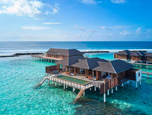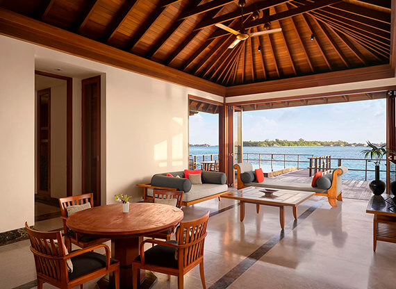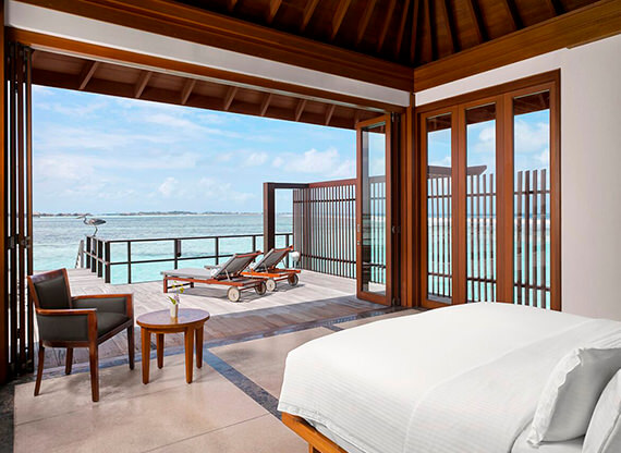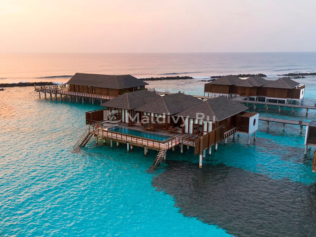 Надводную составляющую номерного фонда отеля возглавляют два роскошных Two Bedroom Ocean Suite with Pool. Гостей ожидают две просторные спальни с ванными комнатами, элегантная гостиная-столовая, обширнейшая терраса с большим бассейном и фантастический вид на океан.