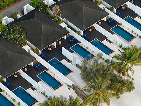 Потрясающие Two Bedroom Beach Villas with Two Pools украшают идиллический пляж тропического острова. Каждая представляет собой очаровательный дуэт идентичных вилл с просторными спальнями, стильными ванными и бассейнами. Вишенка на торте – вид на закат.