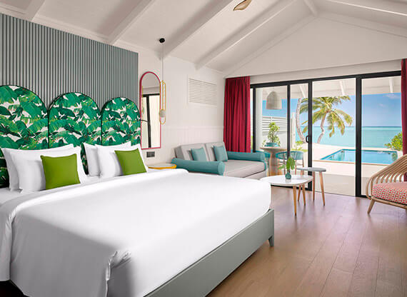 Резорт не претендует на эксклюзивность, но это не значит, что ему нечего предложить взыскательным гостям. Люксовое размещение со всеми атрибутами роскоши доступно как на берегу, так и над водой.