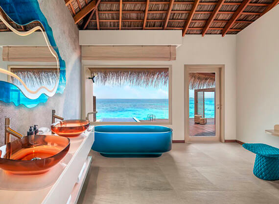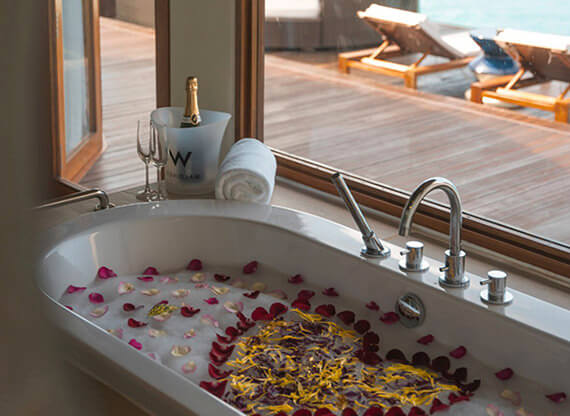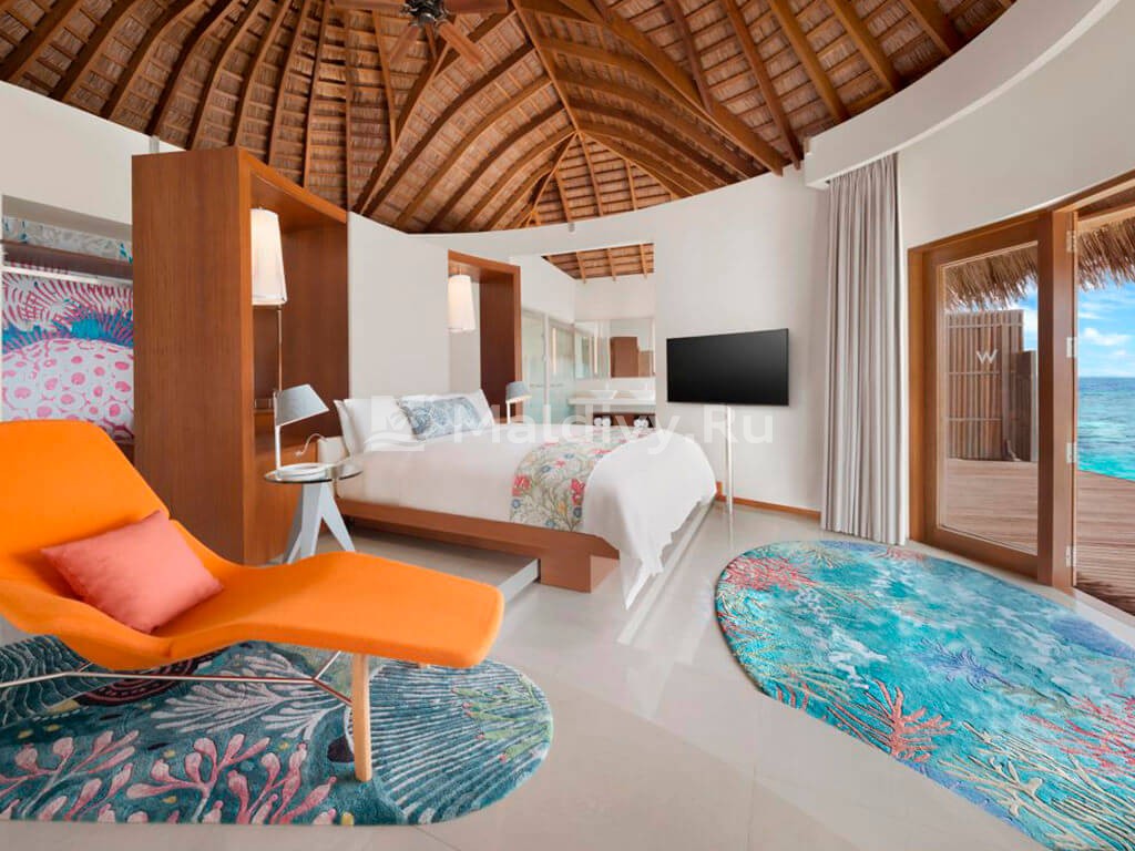 Просторные дизайнерские виллы отеля воплощают мечту об идеальном отдыхе на Мальдивах – роскошном, приватном, свободном. Из-за небольшой площади острова большинство вилл располагается над водой. Все виллы дополнены фантастическими ванными комнатами, открытыми и закрытыми душевыми, просторными зонированными террасами и приватными инфинити-бассейнами. Округлые линии спален, великолепные кровати, круглосуточный сервис – W великолепен в каждой детали!