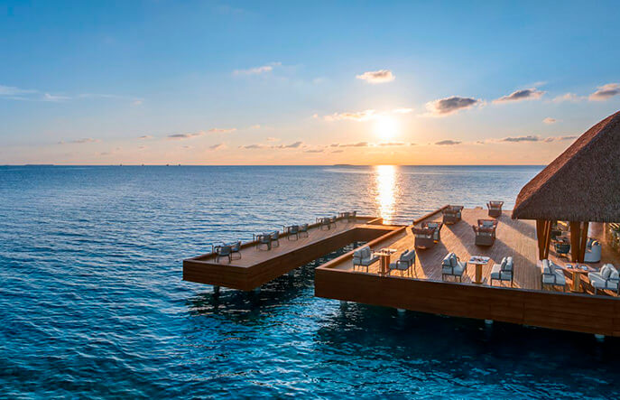 В баре-ресторане Wet Deck всегда можно побаловать себя изысканными коктейлями и закусками, а атмосфера Sip во время Золотого часа по-настоящему завораживает – особенно под устрицы с шампанским. Опции In Villa Dining и Destination Dining охватывает широчайший спектр приватных трапез – от легендарных плавучих завтраков до пикников на необитаемом островке Gaathafushi!
