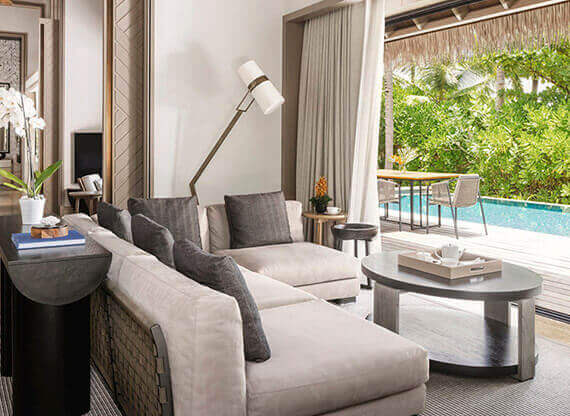 Виллы отеля по праву считаются одними из самых просторных и роскошных на Мальдивах. В коллекцию Waldorf Astoria входит 119 фантастических резиденций с одной-тремя спальнями, способных удовлетворить высочайшие запросы гостей. Шикарные интерьеры, просторные террасы, пейзажные бассейны, круглосуточный батлер-сервис – на фоне ликующей тропической природы и океана.