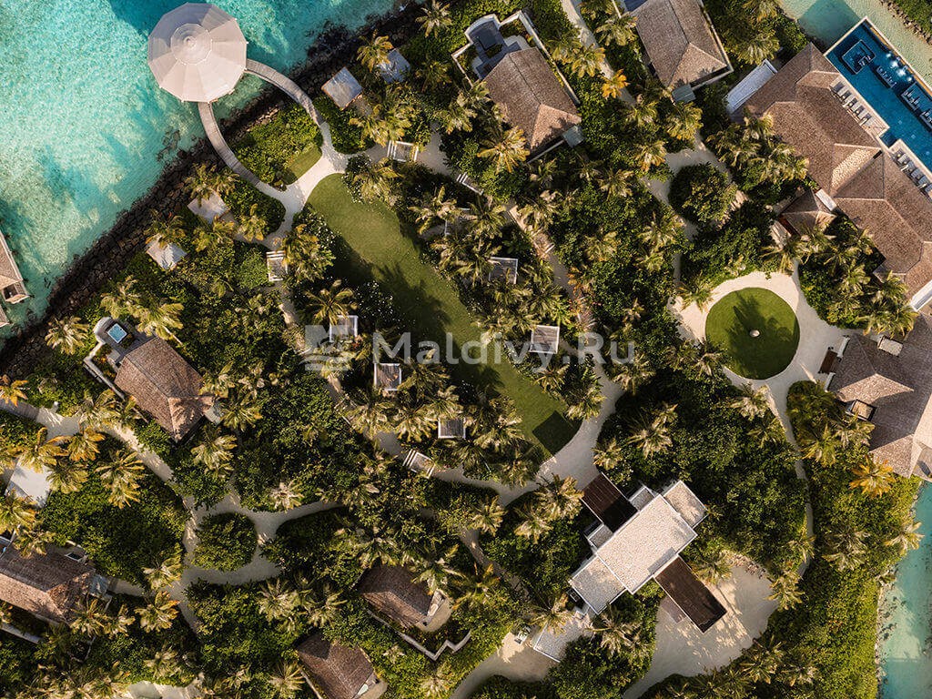 Waldorf Astoria Maldives Ithaafushi занимает небольшой архипелаг в Южном Мале. Это острова преимущественно искусственного происхождения, поэтому кораллы вокруг них еще как следует не разрослись. Однако это с лихвой компенсируется обилием снорк- и дайв-трипов по самым живописным сайтам атолла Каафу. А сертификат PADI, необходимый для занятий скуба-дайвингом, можно получить прямо в отеле.