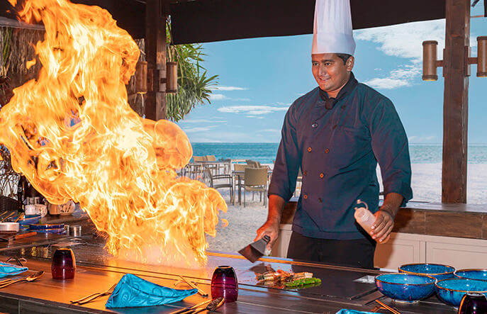 Отель предлагает множество романтических опций In-Villa Dining и Destination Dining. Щедрый пакет Premium All Inclusive и концепция Dine Around позволяет ни в чем себе не отказывать: в них включены все рестораны и бары, за исключением лишь легендарного H2O.