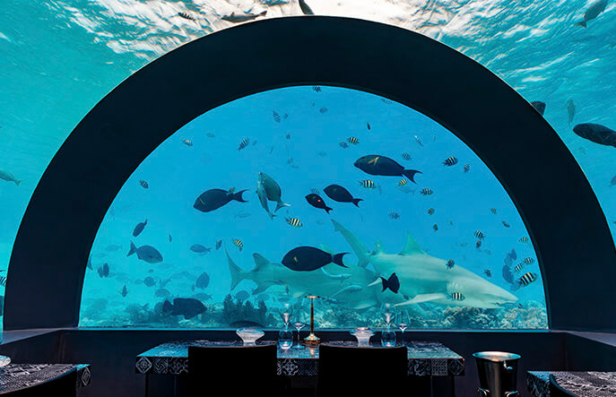 Гастрономическая коллекция You & Me Maldives состоит из великолепной семерки ресторанов и баров, охватывающей все запросы гостей. Уютный рустикальный The Sand с классной международной кухней, Green Carpet, ориентированный на здоровое питание, милый кусочек Италии La Pasta, японские Rising Sun и Sushi Bar достойны всяческих похвал. Однако самой крупной и драгоценной гастрономической жемчужиной отеля является мишленовский H2O во главе с маэстро Andrea Berton. Ресторан расположен под водой, прямо на домашнем рифе!
